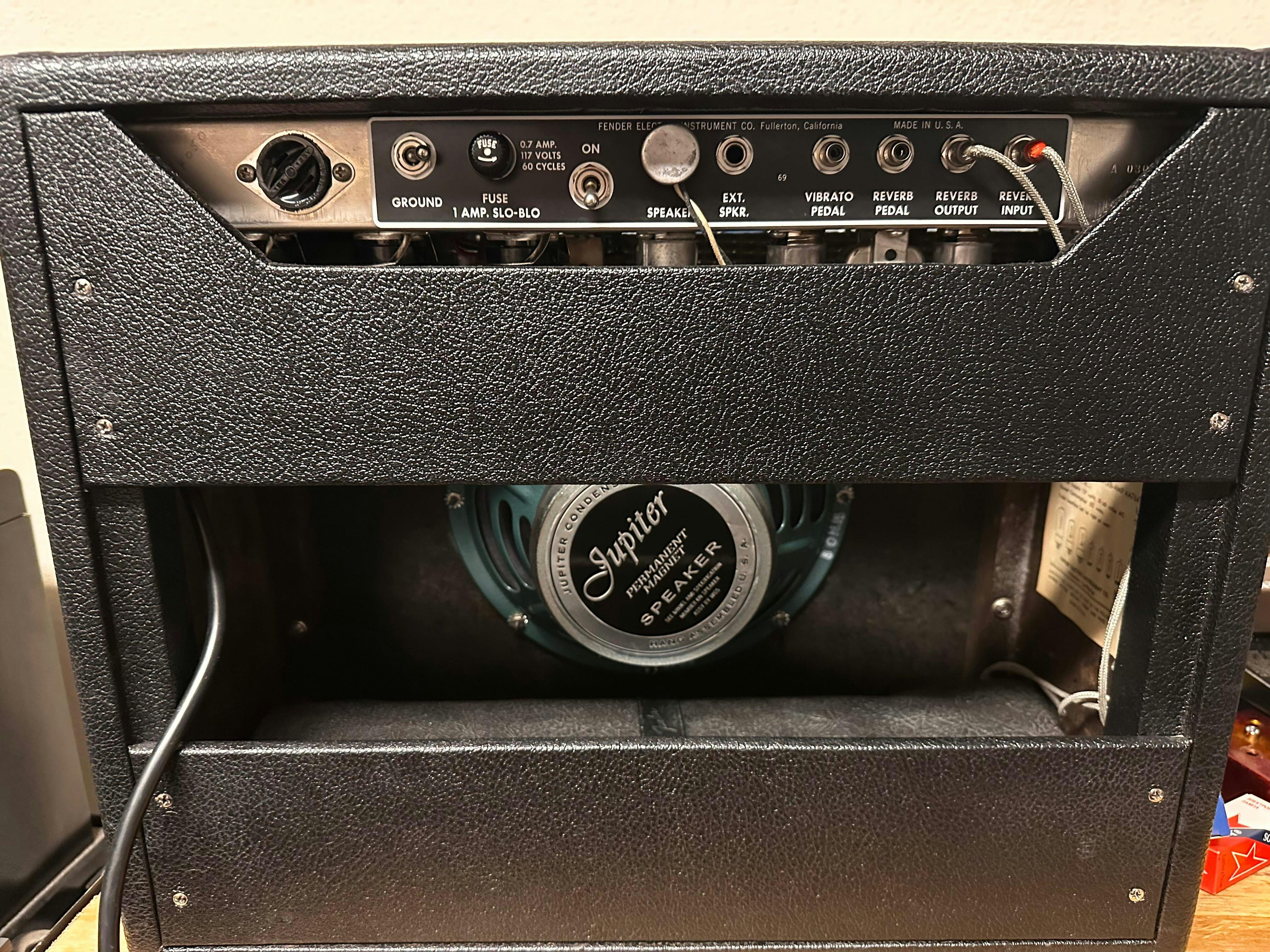 Turned my HotRod Deluxe ext cab into an extra 1x12 for my 66 Blackface head. Swapped out the stock Celestian with the 12LC....HUGE improvement and step towards acheiving my target sound. The Jupiter looks and sounds truly amazing.